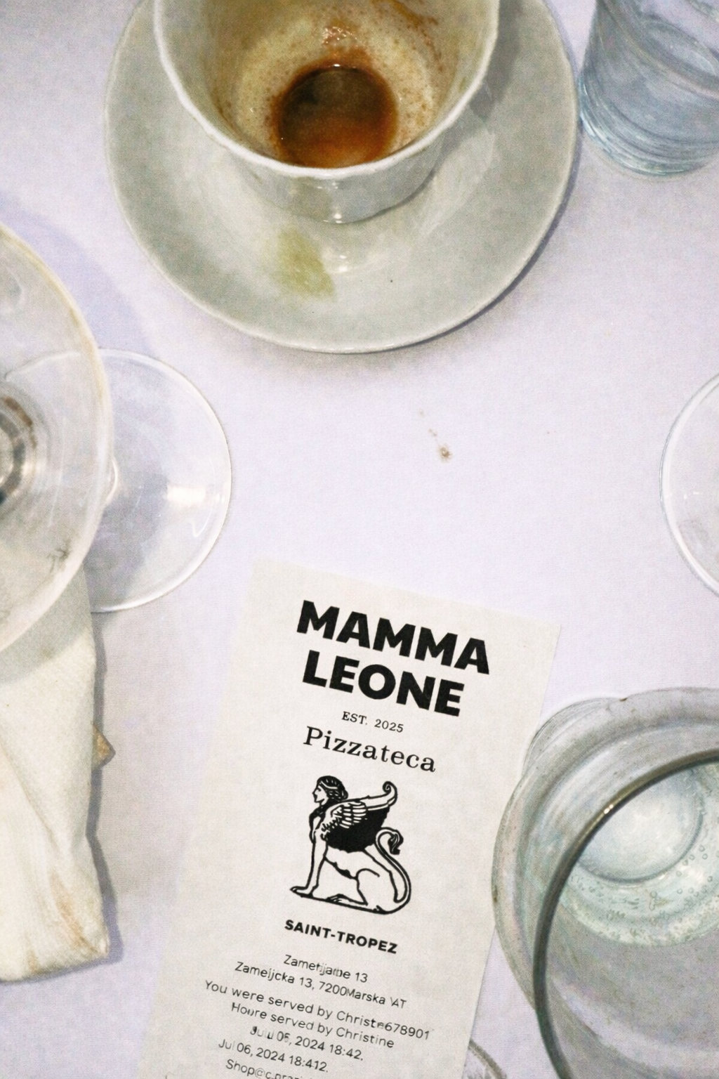 At the heart of Mamma Leone’s identity is a hand drawn lion - the “Leone” of Saint Mark, symbol of Venice - reinterpreted for the Mediterranean. It reflects the founder’s roots and connects the restaurant to a broader regional heritage.