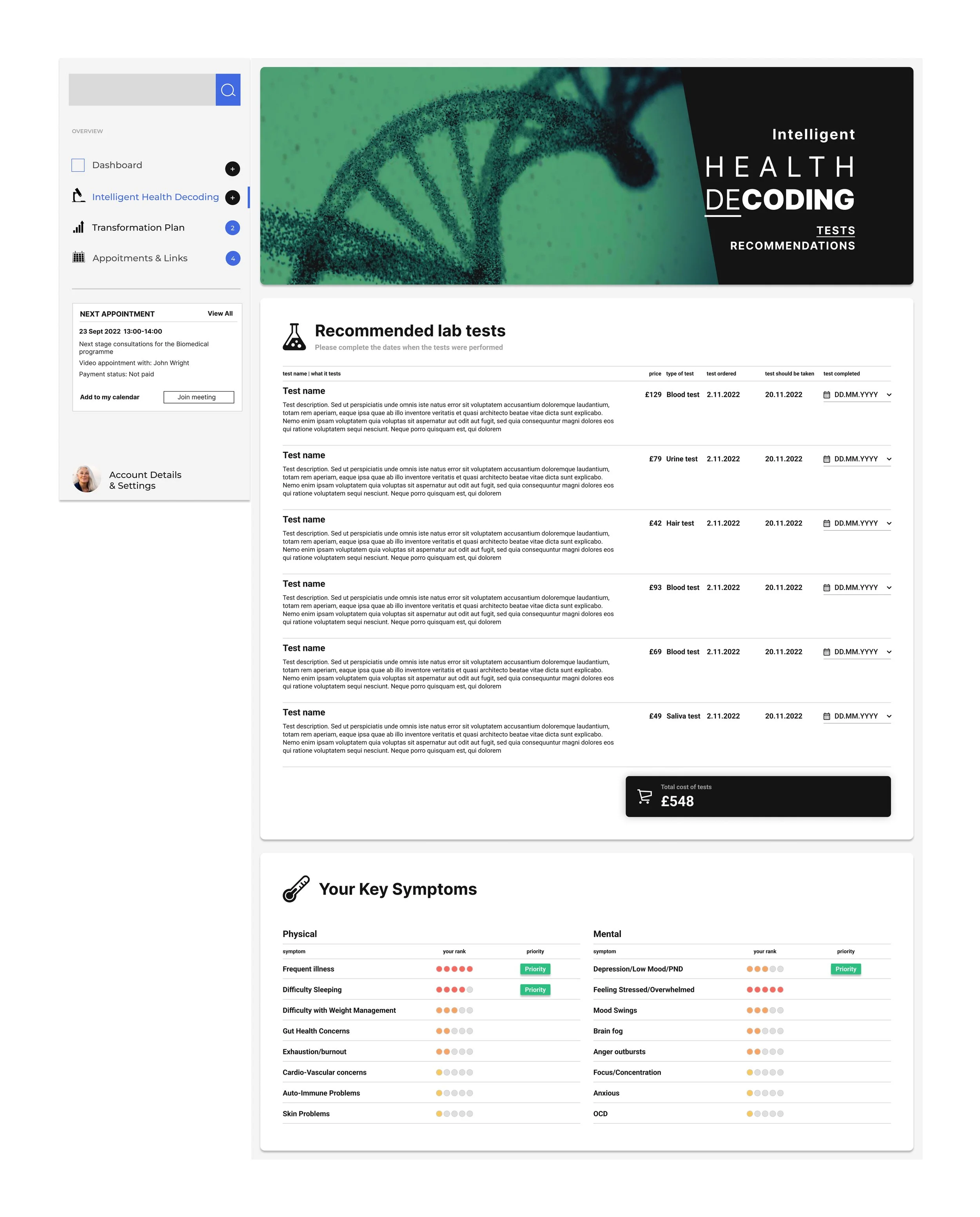 UX/UI Design for user portal,
